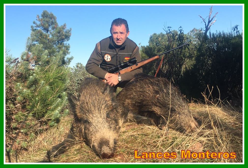 Casi al final de la montería, cumplía al puesto una gran marrana con cinco guarretes y mi compañero tras un ajustado lance consiguió quedarse con un par de ellos, una gran cochina y un primalete.